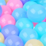 A labdák pasztell színeinek kombinációja vizuális stimulációt nyújt, és még kellemesebbé teszi a játékot.