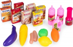 A készlet egy élethű bevásárlókocsit és különféle élelmiszereket tartalmaz, amelyek segítik a finommotorika és a szervezőkészség fejlesztését. A kicsik számos, valódi terméket utánzó elemmel játszhatnak, a zöldségektől az édességekig, így a vásárlás tanulása izgalmas élménnyé válik.
