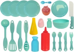A készlet tartalmaz sok kiegészítőt, például edényeket, evőeszközöket és ételimitációkat, amelyek gazdagítják a játékot és a gyermekek kreativitását.