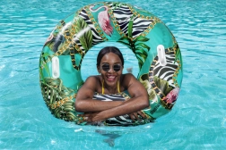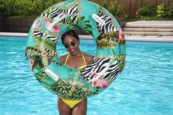 Élvezd a nyarat a kényelmes, 114 cm átmérőjű BESTWAY úszógumival. Tartós PVC anyag, két erős fogantyú a biztonságos tartáshoz és stílusos pálmamintás design, amely 12 éves kortól a tiniket és a felnőtteket is örömmel tölti el. Ideális medencébe, tóra és tengerre egyaránt, könnyen felfújható és leereszthető, a csomag része egy javítófolt is.