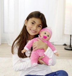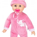 Kellemesen puha kivitel, levehető rózsaszín ruhácskák és cumi – fejleszti a finommotorikát és a gondoskodó szerepjátékot.