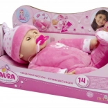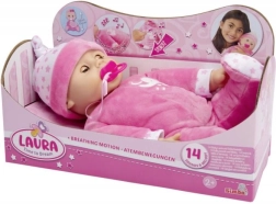 Jó éjt, kicsi Laura! A játékokban gazdag nap végén a baba készen áll az alvásra – finoman lélegzik, pocakja emelkedik és süllyed, és lefektetéskor becsukja a szemét. Puha testével és kedves arcával tökéletes ölelgetéshez és kreatív játékhoz.