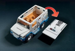 Ünnepeld a PLAYMOBIL 50 évét a népszerű rendőrös szett különleges kiadásával. A pénzszállító, a pimasz csaló és a gyors motor izgalmas, akciódús jeleneteket teremtenek. A levehető tetőnek és a nyitható hátsó ajtóknak köszönhetően a játék gördülékeny és dinamikus.