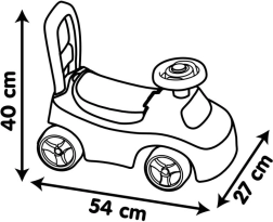 Az ülés alatt praktikus tároló található apró tárgyak számára, a kormány pedig könnyű kezelhetőséget biztosít. Kompakt méretének köszönhetően alkalmas a lakásban és a kertben való használatra is.
