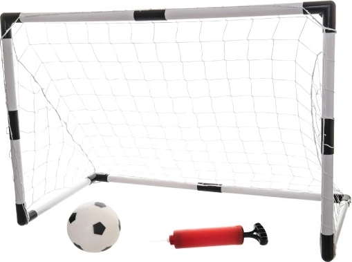 A szett továbbá tartalmaz egy focilabdát és egy pumpát, így bármilyen más felszerelés azonnal készen áll és kezdődhet a meccs.