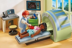 Radiológus páciensével mágneses rezonanciás vizsgálat közben. A készlet tartalmaz egy MRI készüléket asztallal, egy diagnosztikai monitorral és számos egyéb kiegészítővel. Összekapcsolható más PLAYMOBIL kórházi készletekkel. A részletgazdag PLAYMOBIL készletnek köszönhetően a gyerekek újrajátszhatják a radiológus látogatását. Akárcsak a valóságban, a páciensek az MRI készülék megfelelő helyére kerülnek.