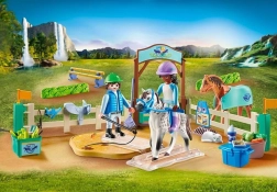 Lépjen be a lovas kalandok világába a Playmobil Lovak Játszótér segítségével. Tartalmaz robusztus játék elemeket, beleértve a mozgatható alapot, két Playmobil figurát, egy lovat és különféle lovas kiegészítőket.