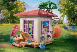 Indulj lovas kalandra a titkos PLAYMOBIL Lókedvelők Klubjával! A kis vízesés mögött, az erdő mélyén, a lovas barátok társasága, a Waterfall egy kényelmes klubhelyet épített hintával és egy praktikus, titkos rejtekhellyel! Ideális hely a hosszú lovaglás utáni pihenésre vagy a klub tagjainak titkos találkozójára. Isabella és Amelia mindig hoznak magukkal egy bögre forró csokoládét és ízletes pereceket. A barátságos ló hallgatja a baráti társaság nevetgélését és a madarak csicsergését.