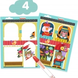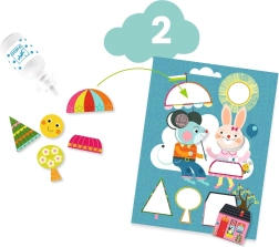 - Kollázs: 1 illusztrált lap, 1 előre kivágott kartonlap, 1 ragasztótubus; Filc kollázs: 12 lap, 4 ív öntapadós filc elem; Color Stop: 4 illusztrált lap, 1 sablon, 4 színes ceruza; Vízfestés: 1 kártya fehér réteggel, 1 varázstoll; Színek felfedése: 3 kártya varázsbevonattal; Kaparókép: 3 kártya, 1 fa eszköz; 1 képes útmutató