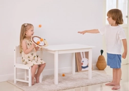 Ez a fa játék 3 évtől gyerekek számára készült, és kiváló szórakozást nyújt a célba dobás által. Így fejleszthetik célzási készségeiket. Ezen kívül a játék könnyen összerakható és szétszedhető, amely megkönnyíti a hordozhatóságot és karbantartást.