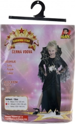 Gyerek farsangi jelmez Fekete Özvegy kis szuperhősöknek. Tartalmaz ruhát, övet, és gallért poliészter anyagból.