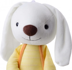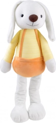 A 60 cm magas, aranyos plüss nyuszi puha és selymes anyagból készült, műanyag szemekkel, hímzett orral és barátságos mosollyal. A stílusos kantáros nadrág és csíkos póló ideális társsá teszi ölelgetéshez, játékhoz és alváshoz. Megfelel a CE és EN 71 szabványoknak, 3 éves kortól ajánlott.