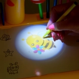 A vetítő éles sablonokat vetít a lemezekről közvetlenül a rajzfelületre, így a gyerekek könnyen átrajzolhatnak, és lépésről lépésre tanulhatnak rajzolni.