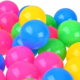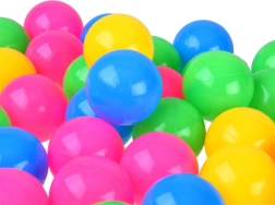 Ez a készlet 100 színes labdát tartalmaz, amelyek tökéletesek gyerekek játéktereihez. A labdák átmérője 6,5 cm és négy élénk színben érkeznek: rózsaszín, sárga, zöld és kék, ami biztosítja vonzerejüket a gyerekek számára és elősegíti a szórakozást.
