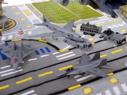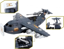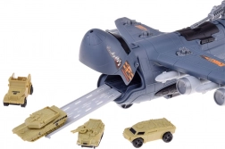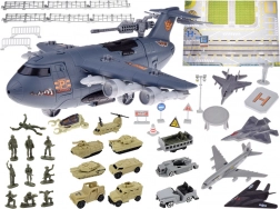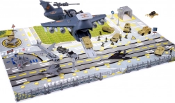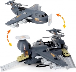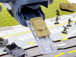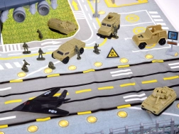 Nagy katonai repülőtér bázis repülőkkel a repülős játékok rajongóinak, amely garantáltan sok stratégiai szórakozást nyújt. A készlet gondosan kidolgozott, finom katonai részletekkel, a kis stratégák, sofőrök és pilóták számára. A nagy katonai repülő számos képességgel rendelkezik, amelyek órákon át lekötik a kis pilótát. A repülőnek nyitható pilótafülkéje, kihúzható rámpája, valamint nyitható hátsó része van a csomagtérhez, ahol külön rekeszek találhatók. Ez a repülő katonai jármű sok puskával és rakétával van felszerelve. A törzs felső részén lévő fedél kinyitása után egy ágyú húzható elő. A szárnyakban is rejtett fegyverek találhatók, amelyeket a törzsben lehet elhelyezni. A készlethez tartozik egy alátét is, amelyen sok útsáv és katonai járművek számára kialakított terület található, így minden kis rajongót órákra leköt a katonai játék.