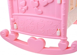 Ez a műanyag bölcső ideális bábuk vagy plüss játékok számára akár 42 cm-ig. Szívekkel és kis forgóval díszítve örömteli játékot biztosít, miközben fejleszti a gyerekek kreativitását és képzelőerejét.