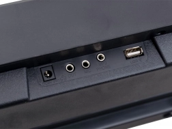 A csatlakozók között található mikrofonbemenet (3,5 mm), vonalbemenet telefon vagy lejátszó csatlakoztatásához és vonal kimenet fejhallgatóhoz vagy külső hangszórókhoz. A tápellátást a csomagban lévő adapter vagy 6× AA elem (nem tartozék) biztosítja, ami növeli a hordozhatóságot otthoni és útközbeni használatkor.