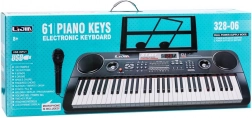 A csomagban mikrofon, adapter, 3,5 mm-es kábel és kottatartó található – minden, ami az azonnali játékhoz és énekléshez kell.