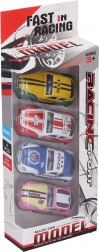 Ez a remek készlet négy strapabíró, részletgazdagon kidolgozott versenykisautót tartalmaz, amelyeket elég hátrahúzni és elengedni. A 7 cm-es, kompakt méretnek köszönhetően ideális otthoni futamokra, akadálypályákra és utazáshoz is. A fém kivitel hosszabb élettartamot és kompromisszumok nélküli szórakozást biztosít.