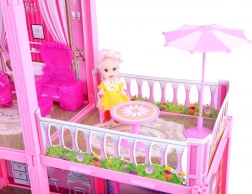 A nagy rózsaszínű babaház részletekre való odafigyeléssel és magas minőségű kidolgozással készült, ami garantálja a hosszú élettartamot és biztonságot a játék során. Rózsaszín és vonzó dizájnja elsősorban a kislányokat vonzza, akik saját kalandokkal teli világot teremthetnek.