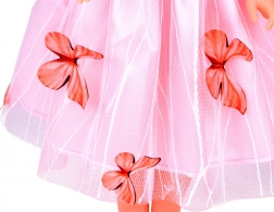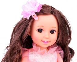 A 36 cm magas, elegáns baba örömet szerez a kis hercegnőknek bulikon és teapartikon egyaránt. Van hosszú, fésülhető, sötét haja virágos hajcsattal, tüllös, pillangós rózsaszín ruhát visel, és a lábán masnis, levehető balerinacipők vannak. Fejleszti a képzeletet, a kreativitást és a szociális készségeket, és ideális 3 éves kortól.
