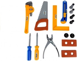 Ez a többfunkciós gyermek műhely bőröndben mindent tartalmaz, amire egy kis barkácsolónak szüksége lehet: csavarhúzók, fűrész, mérőeszköz, fogó, tördelhető pengéjű kés, „fa” elem és mindenekelőtt a gyermek fúró/csavarozó és a szúrófűrész. A szerszámok minőségi, könnyű műanyagból készülnek, semleges színekben, megjelenésükben hűen idézve a valódi szerszámokat – ideálisak szerepjátékhoz és első barkácsprojektekhez.