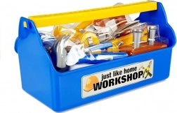 Széles választékú műanyag szerszámkészlet – fűrész, fogó, csavarhúzók, mérőeszköz és egyebek – mindez a strapabíró WORKSHOP dobozban a könnyű hordozhatóságért.