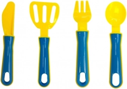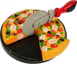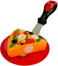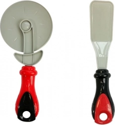 A csomagban műanyag pizzavágó és lapát található kényelmes fogással, ideális a biztonságos és vidám játékhoz éles élek nélkül.