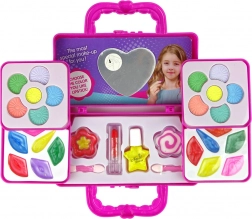 - 12 szemhéjfesték, 12 ajakfény, ecsetek, rúzs, körömlakk, szívecske alakú tükör