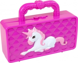 Stílusos gyerek toalettkészlet kihajtható egyszarvús kézitáska formájában, amely minden kis hercegnőt elragadtat. Kompakt méreteinek köszönhetően otthonra és utazáshoz is ideális, és minden kincset szépen egyben tart. A beépített szívecske alakú tükör segít ellenőrizni a végeredményt.