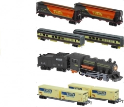 - A csomag tartalma: mozdony, 6 vagon, kb. 10 m sín, 4 fa