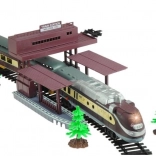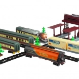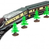 - Gazdag készlet: mozdony, 4 kocsi, fák, sínek és váltók