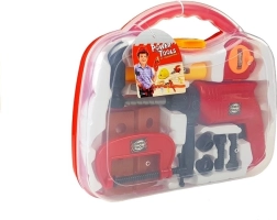 A praktikus bőröndben található gyermek szerszámkészlet élethű szerelősjátékot kínál. Tartalmaz forgó bittal ellátott fúrót, kalapácsot, satut, mérőszalagot és további kiegészítőket. A játék támogatja a kreativitást, a finommotorikát és a logikus gondolkodást. Könnyű és biztonságos műanyag anyag, valamint ergonomikus méretek a gyerekkezekhez. 3 éves kortól ajánlott, megfelel a CE előírásoknak.