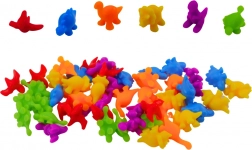 A készlet gazdag színű dinoszaurusz gyűjteményt és hat élénk színű poharat tartalmaz, ahová a gyerekek elhelyezhetik dinoszauruszaikat. A játék része egy speciális csipesz is, amely segíti a gyerekeket a dinoszauruszok áthelyezésében és színek szerinti osztályozásában. Ez erősíti a motorikus készségeket és a koordinációt.