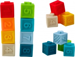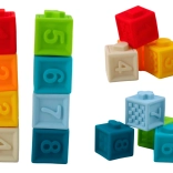 A kockák puha műanyagból készültek, amely biztonságos a gyermekek számára és könnyen megfogható.