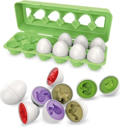 Szórakoztató és oktató tojáskészlet gyerekeknek, amely támogatja a finommotorika fejlesztését, a színek és formák felismerését, valamint a logikus gondolkodást. Minden tojás két félből áll, amelyek csak azonos forma és szín esetén illeszkednek egymáshoz. A könnyű műanyag kivitel és a tojástartó stílusú praktikus doboz lehetővé teszi, hogy a játékot bárhová magaddal vidd.