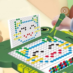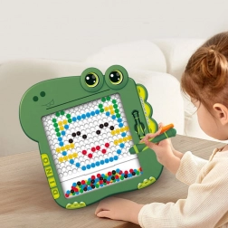 Fedezze fel a mágneses táblát, amely játékká varázsolja a tanulást. Az átlátszó ablak mögötti színes golyóknak (fekete, zöld, kék, piros és sárga) és a mágneses rajzeszköznek köszönhetően a gyerekek könnyedén kirakhatnak mintákat, betűket vagy egyszerű képeket. A zöld dinoszaurusz dizájn azonnal elnyeri a kis alkotók tetszését.