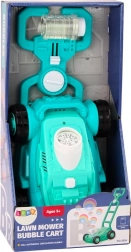 Szórakoztató, gyerekeknek készült buborékfújó fűnyíró kék színben, amely tolás közben rengeteg színes buborékot készít. A stabil fogantyúval könnyen irányítható, és támogatja a kreatív játékot, a motoros készségeket és a szabadtéri mozgást. A csomag része egy palack oldat, amelyet alulról egyszerűen fel lehet csavarni.