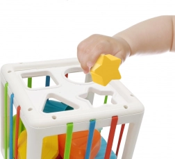 ✅ Multifunkcionalitás: A játék kocka szelejtezőként (formabedobó) és csörgőként is működik. A gyerekek rázogatva kellemes hangokat hallanak, ami tovább stimulálja érzékeiket.