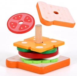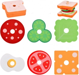 Szórakoztató és fejlesztő fa szendvics építőkészlet 8 elemmel és 10 receptkártyával, amely fejleszti a finommotorikát, a kéz–szem koordinációt és a kreativitást. A minőségi faelemek tartósak és biztonságosak, 3 éves kortól ajánlott.
