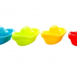 Négy, élénk színű, lebegő csónak teszi változatosabbá a fürdést. A nyílásokkal vizet lehet felvenni és átszűrni, ami támogatja a koordinációt és a kíváncsi kísérletezést.