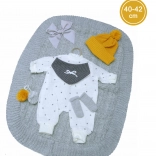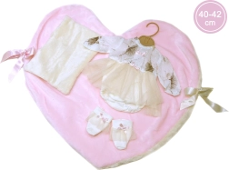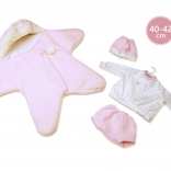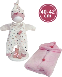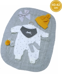 Ruházat nélkül kerül forgalomba, így teret ad az eredeti Llorens ruhák megvásárlásának és kombinálásának a 40–42 cm vagy 43–45 cm méretekből. A csomag tartalmaz egy cumit, mint aranyos kiegészítőt, és 3 darab LR44 gombelem-akkumulátort, amelyek hosszan tartó játékot biztosítanak.