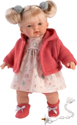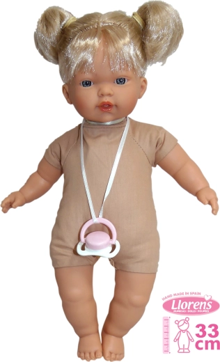Aitana baba hossza 33 cm, és gondosan kézzel készült Spanyolországban. A csomag tartalmaz 3 gombelem LR44 elemet és egy útmutatót a cseréhez, amely megkönnyíti a baba működésének fenntartását. Az elemek fogyasztási cikkeknek minősülnek, így az elemek lemerülése nem jelenti az elállás okát. A ruházat nem része a csomagnak, javasoljuk, hogy vásároljon eredeti ruházatot a 33 cm-es babákhoz a Llorens kínálatából.