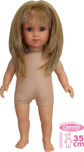 A spanyol Llorens márka élethű Elena babája minden kislány tökéletes társa. 35 cm magas és tökéletesen kidolgozott, hogy egy valódi kislányra emlékeztessen. Kézzel készített Spanyolországban, ez a baba hosszú távú minőséget és biztonságot nyújt 3 éves kortól. A csomag nem tartalmaz ruházatot, ezért javasoljuk, hogy vásároljon eredeti ruházatot a 35 cm-es Llorens babákhoz.