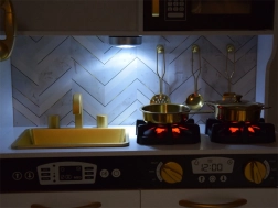 A konyha úgy van tervezve, hogy a gyerekek biztonságosan utánozhassák a főzést, a konyha szervezését és serkenthessék kreativitásukat.