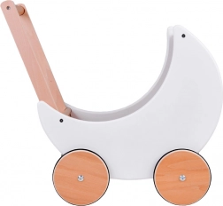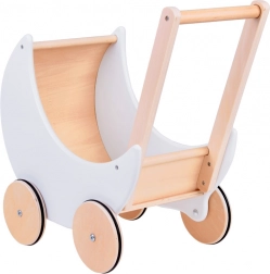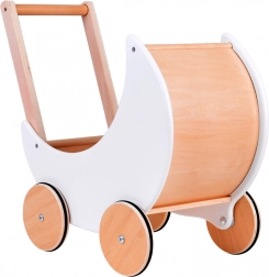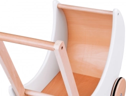 Aranyos fa babakocsi természetes fából készült, ami gyerek számára biztonságos. Ergonomikus fogantyúja alkalmazkodik a kis kezekhez, támogatva az egyensúly fejlődését. Gumiból készült kerekek védik a padlót a karcolásoktól és biztosítják a csendes haladást.