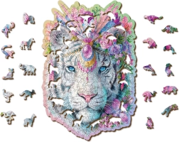 A WOODEN CITY Misztikus tigris fa puzzle gyönyörű gyűjtői darab és remek ajándék az egyedi kirakók szerelmeseinek. A precíz lézeres megmunkálás kiemeli a motívum részleteit, és simák, szálkamentesek az élek. A darabok egy része felismerhető állat-, épület- és tárgyformát kapott, amelyek önállóan kis figuraként is felállíthatók.