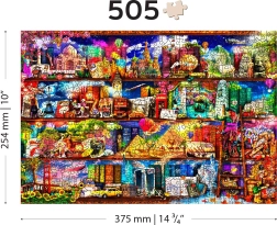 Lépjen be a WOODEN CITY precíz fa kirakóinak világába. Ez a modell, az utazási könyvek polcának motívumával, kihívást kínál a kirakók szerelmeseinek: különleges formájú, lézerrel részletesen kiemelt elemek és kétoldalas kivitel a dupla szórakozásért. Az elemek egy része állatok, ikonikus épületek vagy tematikus tárgyak alakját idézi – és sok közülük önállóan is megáll, mint apró figurák.