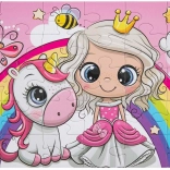 Ez a mesés kirakó hercegnővel és egyszarvúval ideális az első kirakásokhoz. A nagy, könnyen megfogható darabok fejlesztik a finommotorikát, a türelmet és a logikus gondolkodást a gyerekeknél. Kirakás után egy gyönyörű képet kapunk, amit a gyerekek imádni fognak.