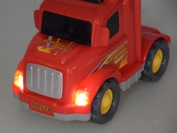Ez a nagy gyermek vontató pótkocsival ideális a kis sofőröknek és pilótáknak. A frikciós meghajtásnak köszönhetően elég a játékot sima felületen meglökni, és máris elindul. A fülke tetején található gomb valósághű motor- és dudahangokat, valamint fényhatásokat aktivál, így a játék még szórakoztatóbb.